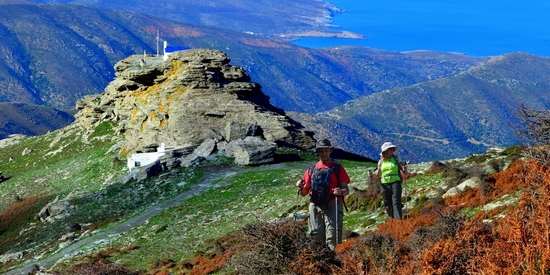 Andros is ideaal om te wandelen. Het eiland kent een uitgebreid netwerk van paden, dat de nederzettingen, vele kloosters en kerken, en de havens onderling verbindt. Vrijwel alle oude wandelpaden, die vroeger het enige vervoersnetwerk vormden op het eiland, zijn geplaveid met natuursteen en veel van de stenen bruggen, die onderdeel uitmaken van dit netwerk zijn nog intact.